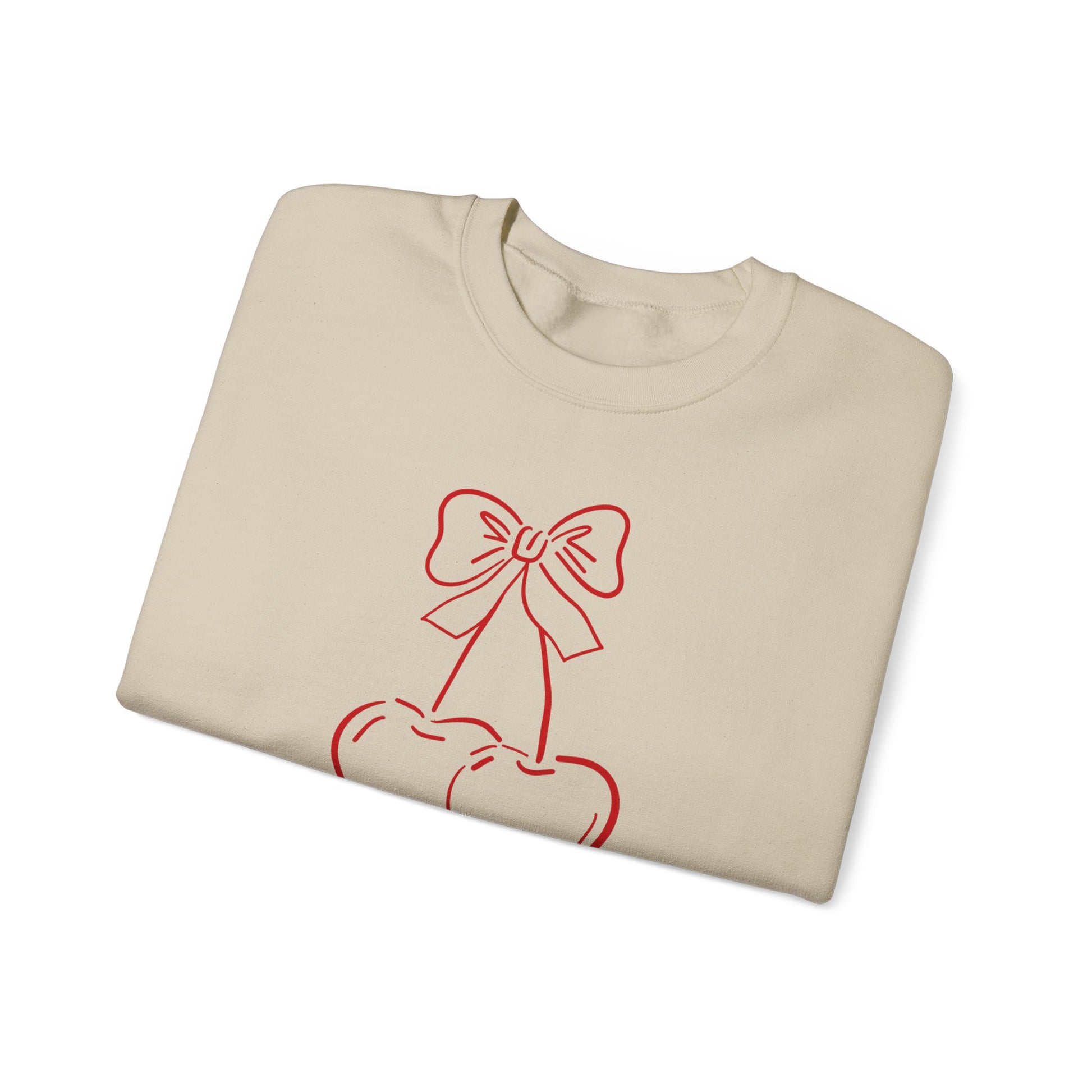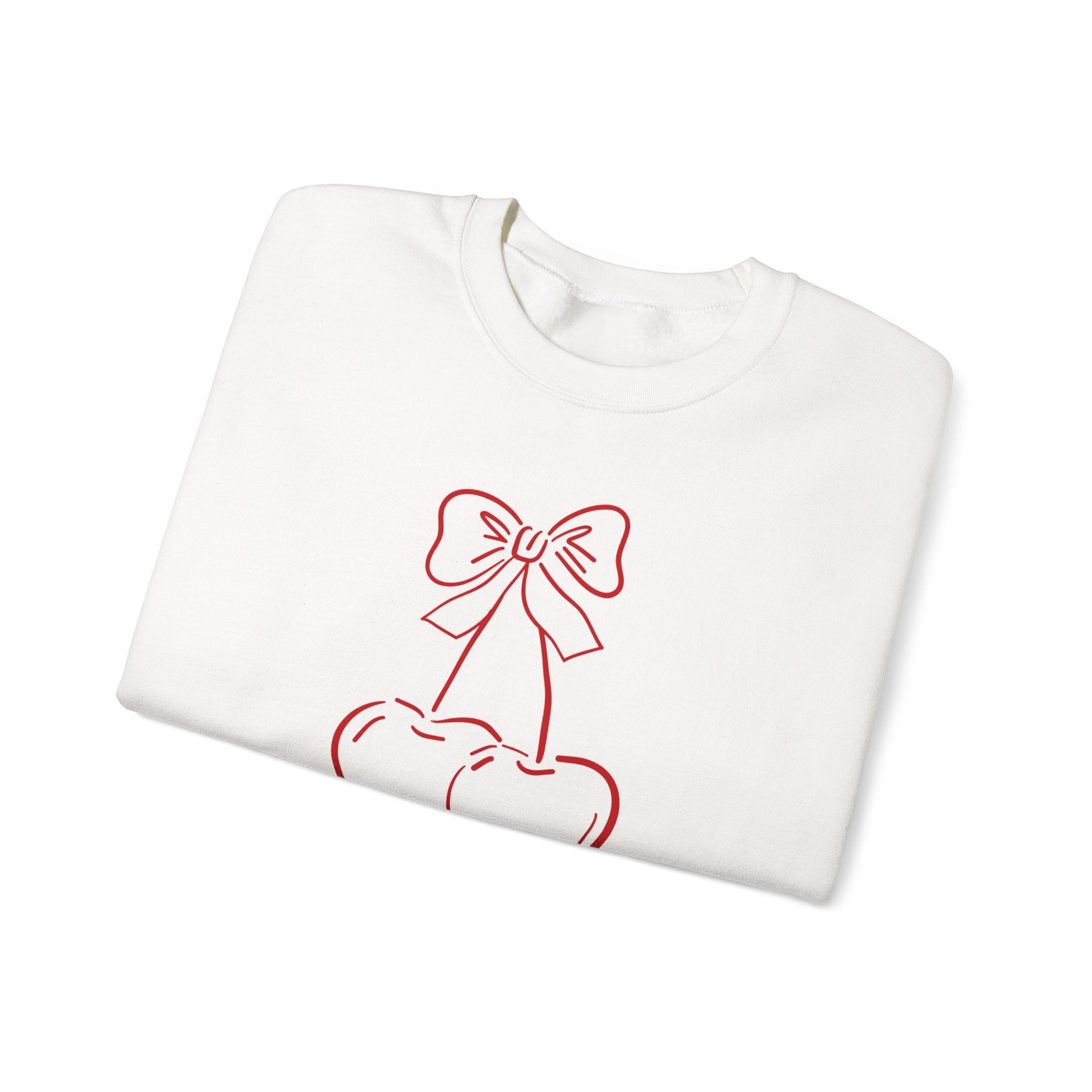 Cherry Bow Sweatshirt — Cute Minimalist Pink Cherry Crewneck