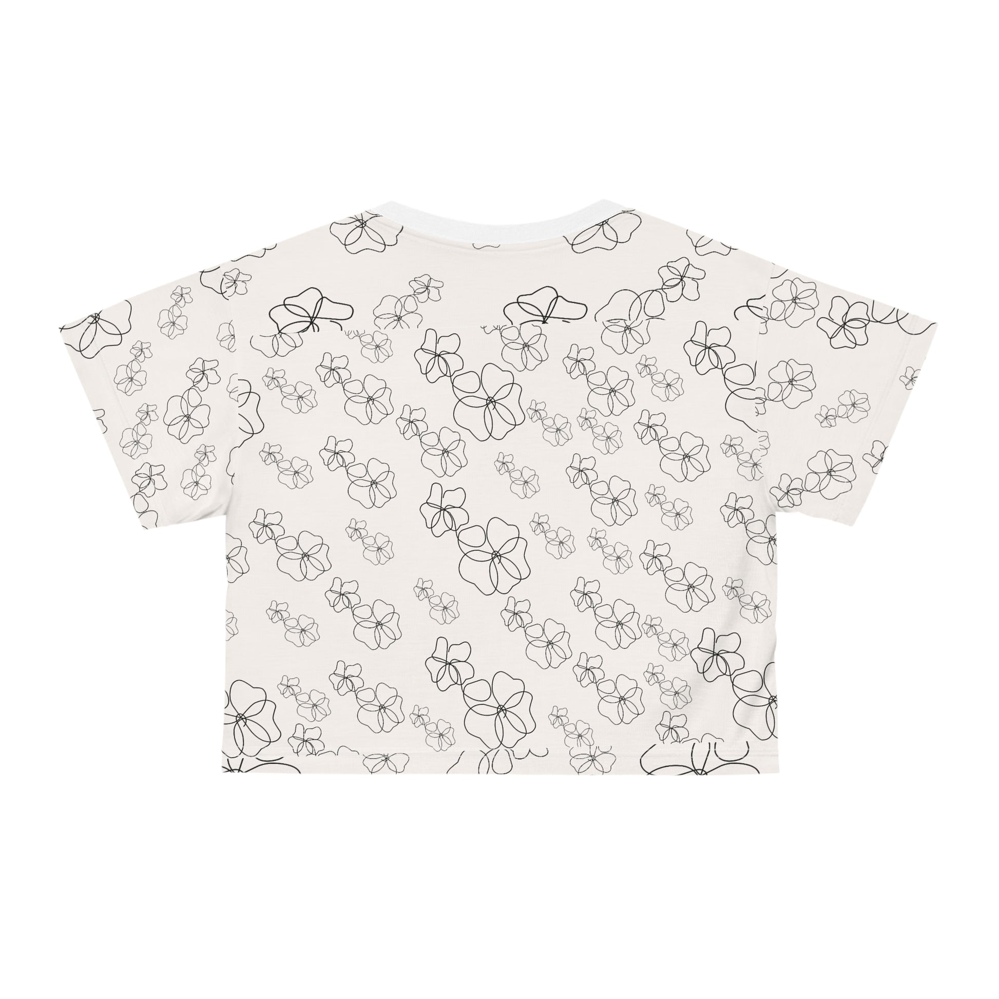 Lightweight and airy, this cropped tee wears like a gentle whisper. Hand-drawn floral outlines drift across a soft, pale ground — casual and calm, with a hint of easy botanicals. The relaxed boxy cut skims the waist, perfect for layering over high-waist denim or pairing with a breezy skirt. Breathable polyester keeps the print crisp and the silhouette flattering during warm days, studio sessions, or slow weekend strolls. Reach for this when you want a subtle, artful statement that reads fresh without shouting. It moves with you, dries fast, and keeps its shape through repeat wears.