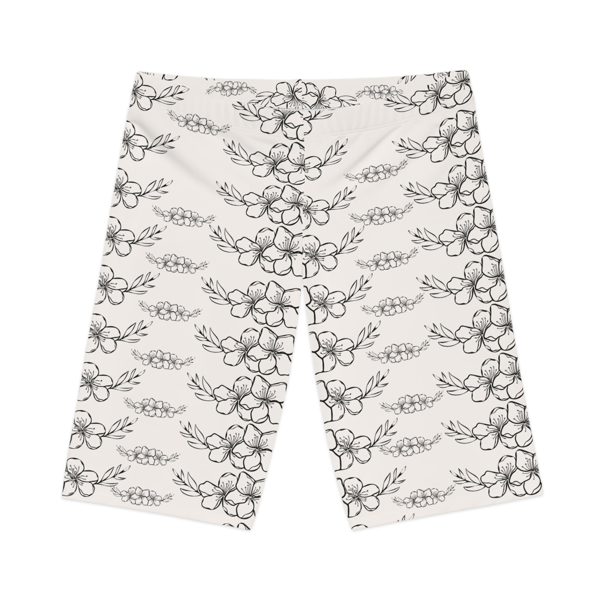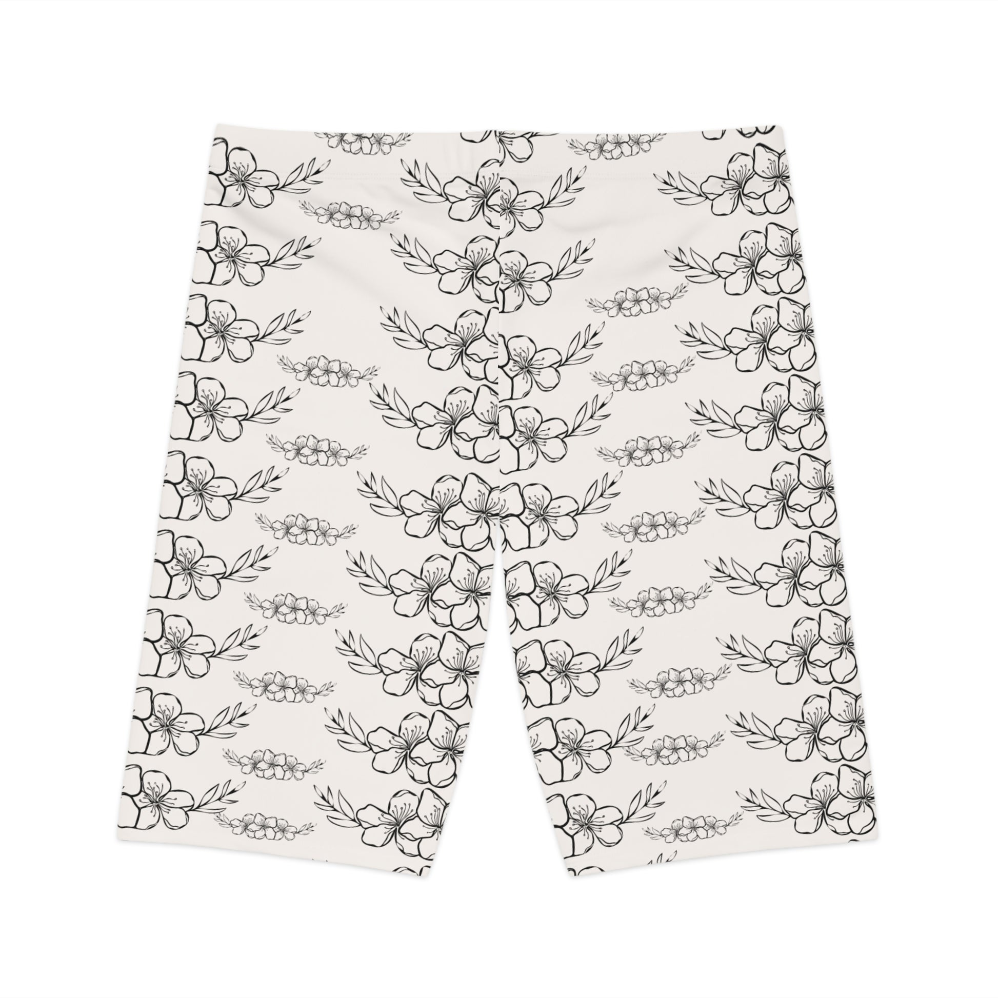 Floral Sketch Bike Shorts for Women | Minimalist Patterned Activewear