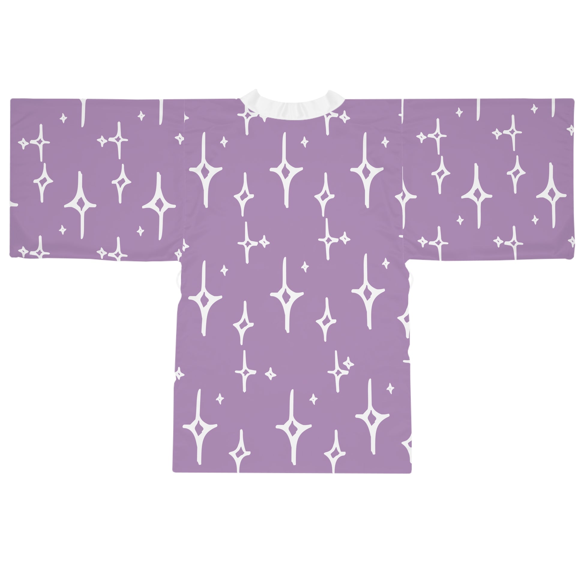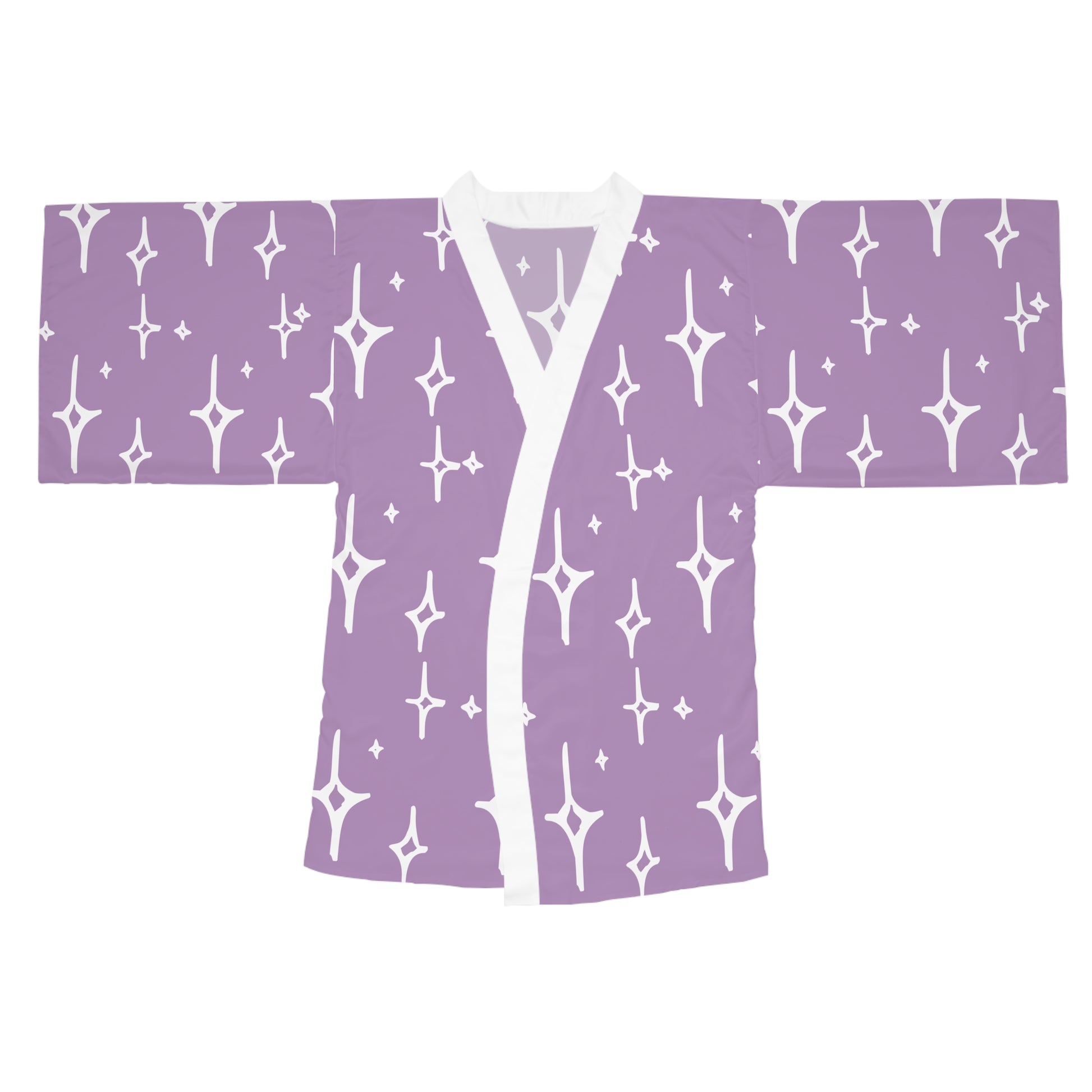 Lavender Starry Kimono Robe — Long Sleeve Relaxed Aesthetic Loungewear