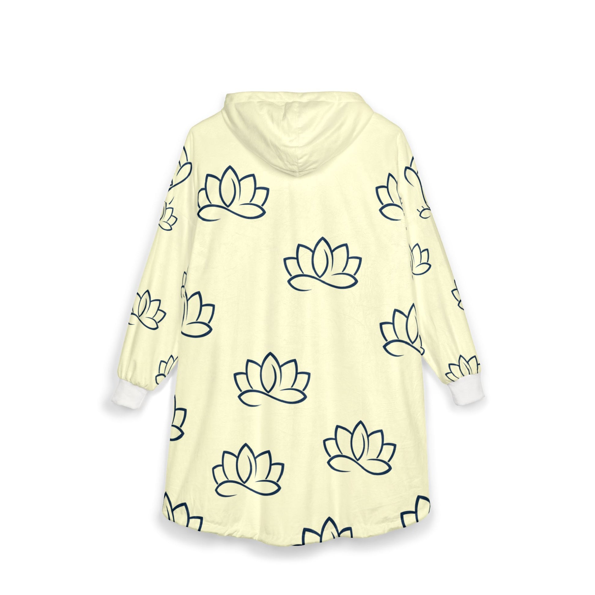 Wrap yourself in calm with this hooded blanket — a lightweight, fleece layer patterned with gentle lotus outlines on a soft, pale background. It drapes like a warm embrace during early-morning meditation, slow weekends, or evenings curled up with a book. The roomy kangaroo pocket keeps hands toasty or stashes tea and a phone, while the plush interior and medium-weight polyester weave hold a comforting warmth without feeling heavy. The repeated lotus motif brings a quiet, mindful energy to the piece, blending relaxed loungewear vibes with a subtle, serene aesthetic.