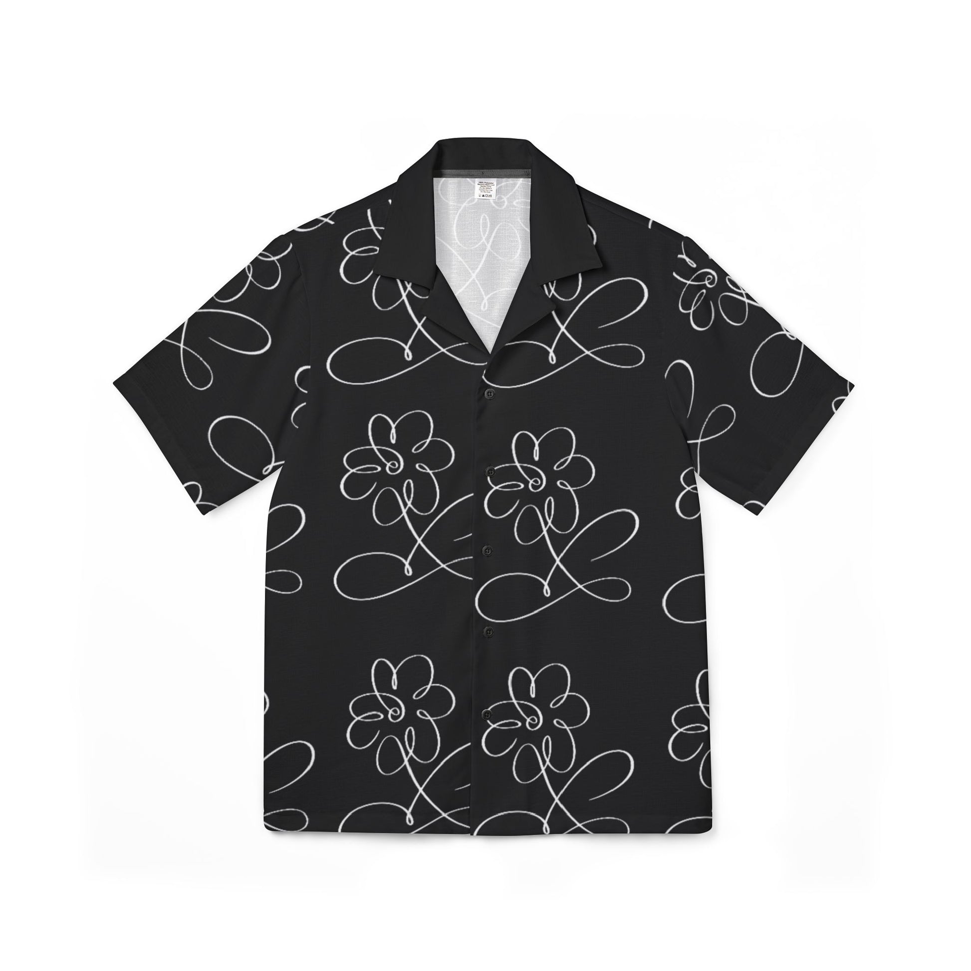 This lightweight Hawaiian camp shirt brings a quietly playful energy to warm days and casual nights. The monochrome, hand-drawn floral pattern reads like a sketchbook doodle — loose petals and looping stems that feel effortless and relaxed. Cut from breathable polyester with a subtle linen texture, the shirt drapes cool and airy whether you’re wandering a beach town, tending a rooftop garden, or meeting friends for sunset drinks. The button-front and open collar give it a laid-back silhouette that layers easily over a tee or worn solo for an uncomplicated statement. Colors stay vibrant thanks to dye-sublimation printing, and the all-over pattern keeps the design continuous around the body for a seamless, artful look.