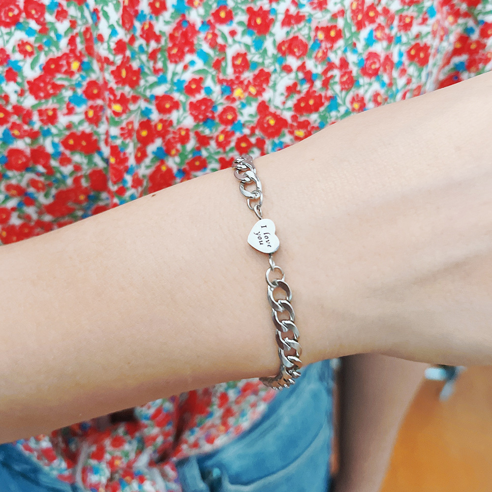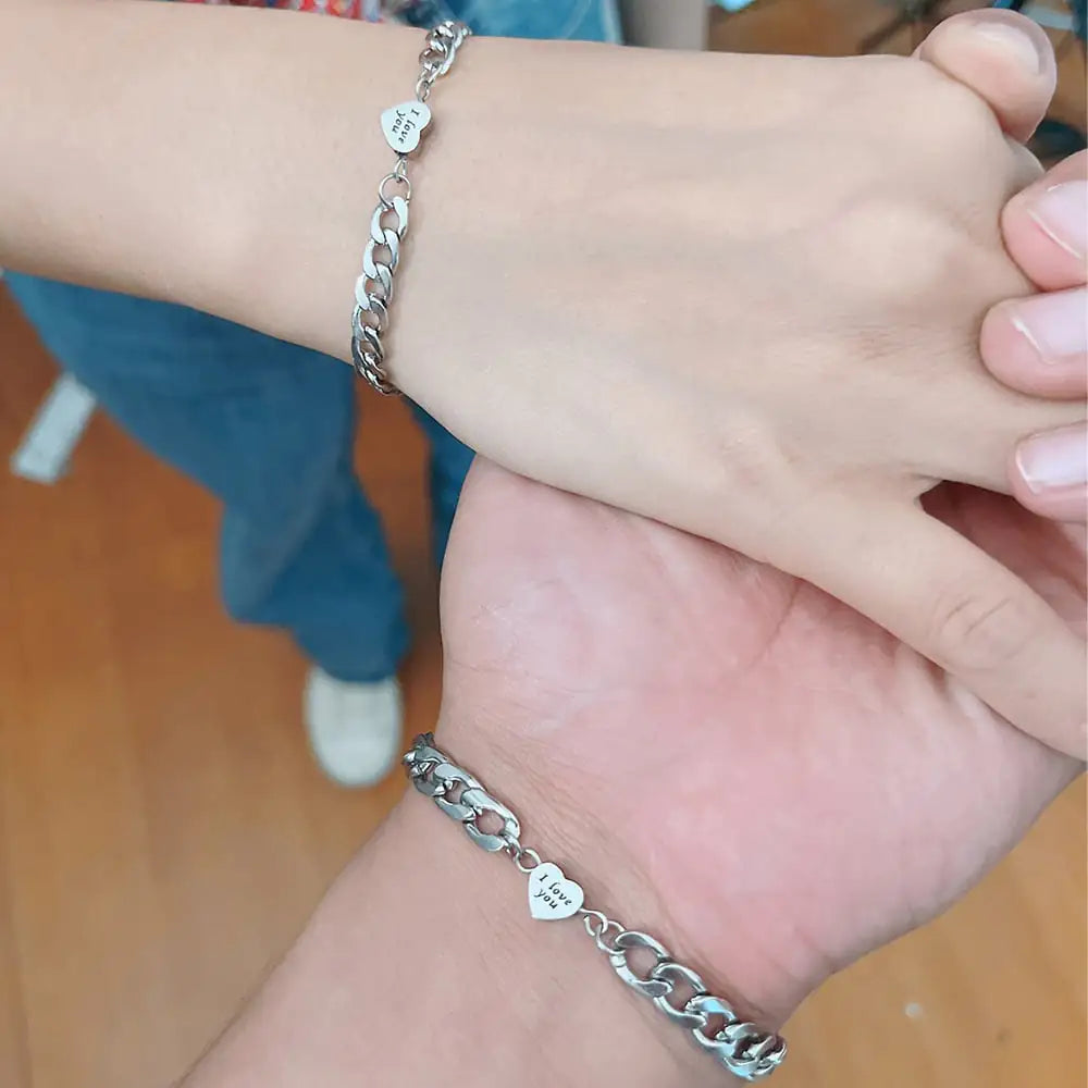 Crafted from high-quality stainless steel, this bracelet features a charming heart shape that symbolizes your everlasting connection. Its steel color adds a modern touch, making it suitable for any occasion, whether it's a romantic dinner or a casual outing.