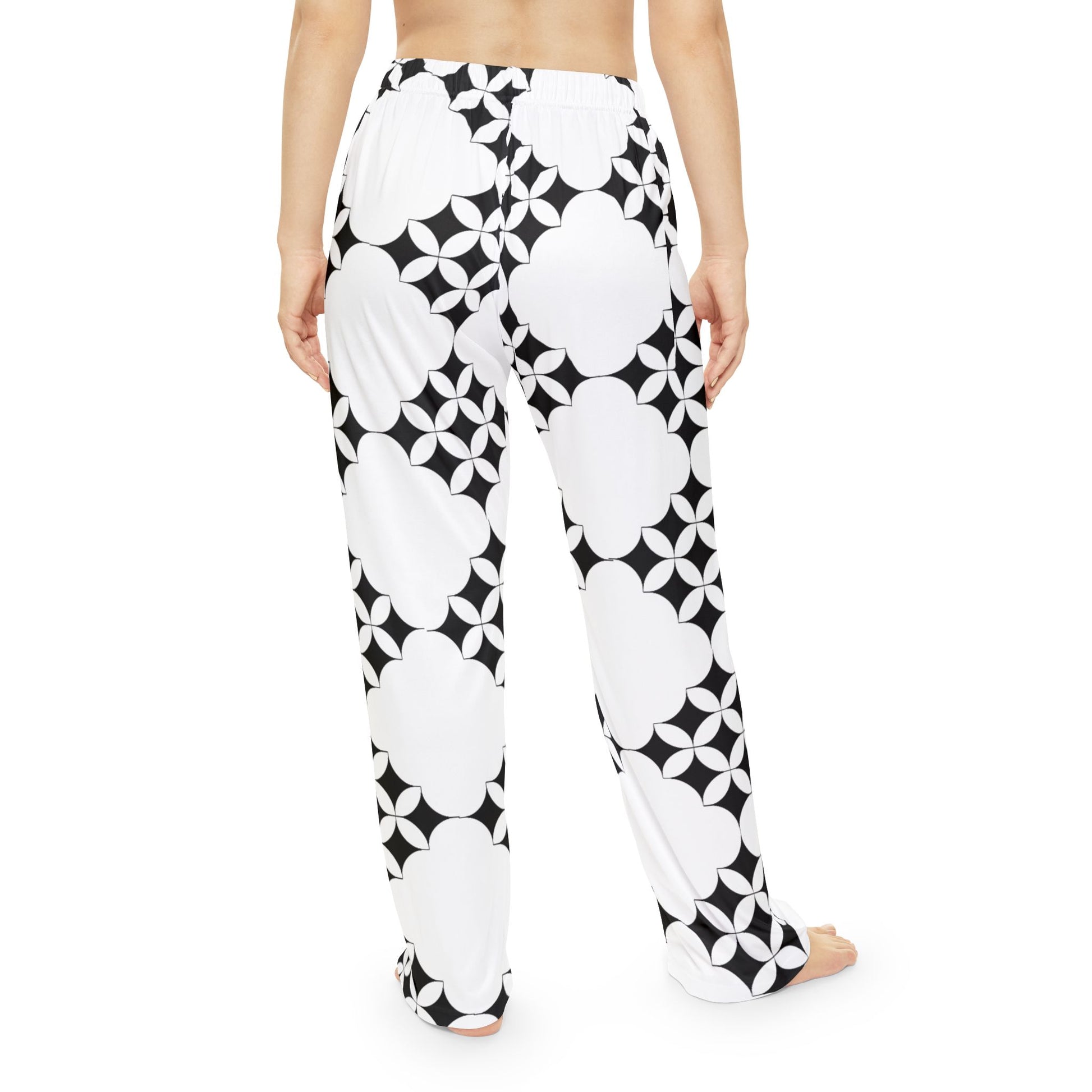 Women's Pajama Pants – Black & White Geometric Clover Print Lounge Pants
